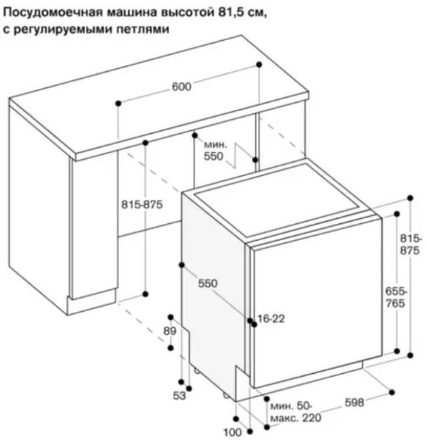 Многие отдельностоящие приборы отличает высота 85 см, однако они оснащаются съемной крышкой, что также позволяет устанавливать их под столешницей. Высоту можно немного изменить при помощи регулируемых ножек — это касается в основном встраиваемых моделей.