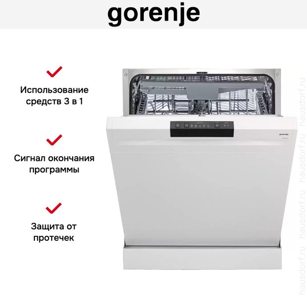 Отдельностоящая модель Горение отлично впишется в кухонный интерьер, главное — правильно выбрать место, чтобы подвести коммуникации. Имеет стандартные размеры, поэтому может не поместиться на очень маленькой кухне. В камеру можно загрузить ограниченное число комплектов: 14 шт. Комплектом считается набор посуды на одного человека, который нужен для полноценного приема пищи: глубокая и плоская тарелки, тарелка для салата, блюдце под чашку, сама чашка, ложка и вилка.