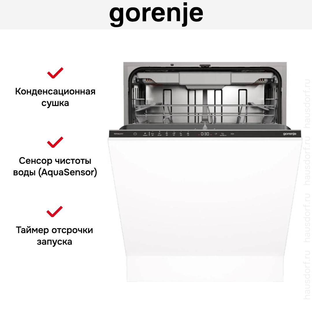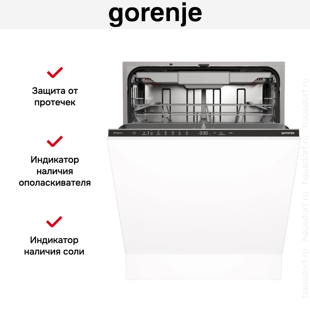 Посудомоечная машина Gorenje GV16D5 — полностью встраиваемая полноразмерная модель с закрытой панелью управления в черном цвете, которая сохраняет целостность кухонного фасада. Ее корпус рассчитан на монтаж под навес вашего фасада, поэтому прибор органично вписывается в современный интерьер. Габариты 81,6×59,8×55,5 см и рекомендуемая ниша 82×60×55,5 см упрощают выбор места и монтаж, а масса около 29,7 кг делает установку доступной даже без применения сложной техники.