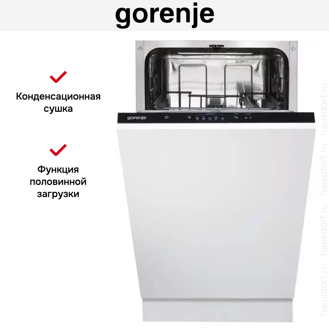 Встраиваемая посудомоечная машина Gorenje GV520E15 — компактный узкий прибор с полностью скрываемым фасадом, который гармонично встроится в мебельный ряд и не нарушит общую композицию кухни. Черная панель управления остаётся визуально доступной, а передняя часть под навес вашего фасада позволяет сохранить единый интерьер. Корпус рассчитан на нишу стандартной глубины, поэтому установка проходит аккуратно и не требует дополнительных пластин или изменений в мебели.
