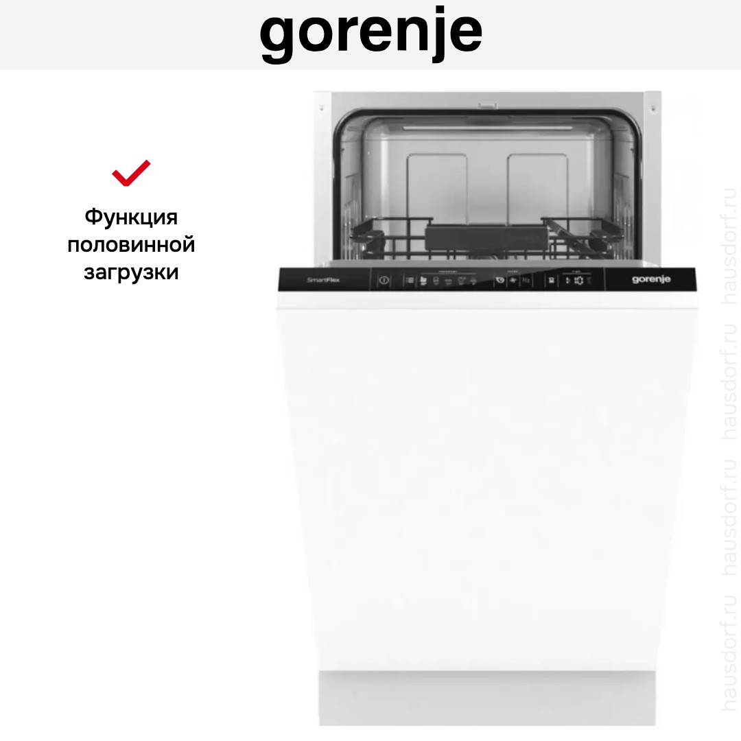 Встраиваемая посудомоечная машина Gorenje GV541D10. Полностью встраиваемый корпус делает прибор незаметным в интерьере и сохраняет единство фасадов. Узкий формат 45 см экономит кухонное пространство и идеально подходит для небольших модульных кухонь. Габариты 81.5×44.8×55 см и рекомендуемая ниша 82—86.5×45×58 см упрощают монтаж и скрытую установку под столешницу.