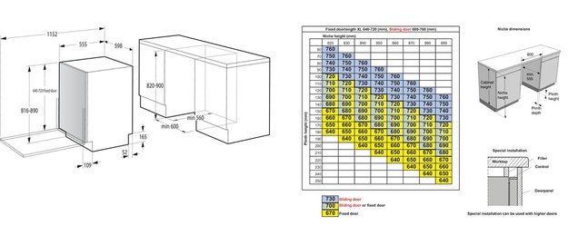 - Размеры ниши для встраивания (ВхШхГ): 82x60x55.5 см