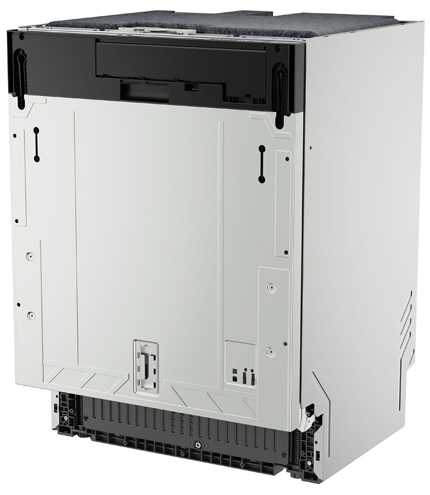 Встраиваемые устройства устанавливаются в тумбу или нишу мебельного гарнитура. В случае, если они полностью закрыты мебельным фасадом, машины считаются полностью встраиваемыми. Такое размещение позволяет сохранить единый стиль интерьера. Панель управления их также скрыта — чтобы начать работу и задать программу, дверцу придется открыть.