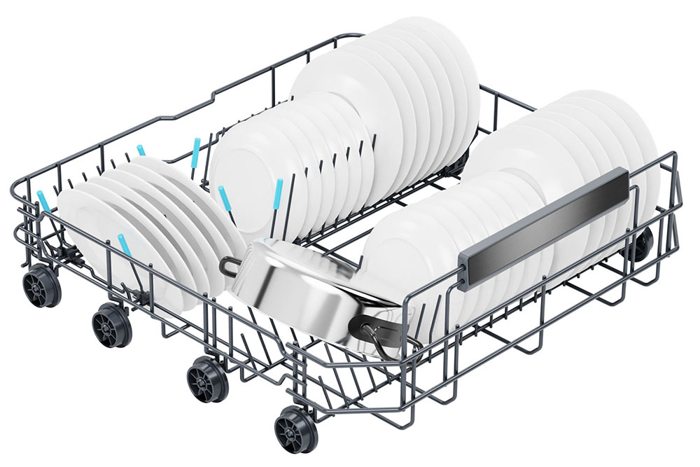 Корзина для столовых приборов — один из обязательных аксессуаров, которыми оснащается любая посудомоечная машина. Она представляет собой сетчатый пластиковый органайзер, в котором устанавливаются в вертикальном положении ложки, ножи и вилки. Корзина, как правило, разделяется на отдельные отсеки, в каждый из которых можно поместить один или несколько предметов. Зачастую сверху она закрывается специальной крышкой, которая также служит для разделения приборов, способствуя более тщательному их мытью.