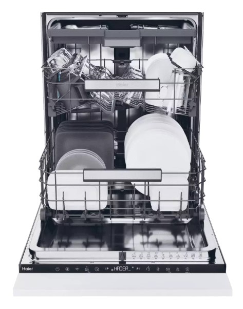 Встраиваемая модель Хайер отлично впишется в любой интерьер, главное — правильно выбрать место, чтобы подвести коммуникации. Устанавливается в нишу целиком, полностью закрывается декоративной панелью. Обратите внимание: в комплекте не идет фасад, его необходимо установить самостоятельно. Имеет стандартные размеры, поэтому может не поместиться на очень маленькой кухне. В камеру можно загрузить ограниченное число комплектов: 16 шт. Комплектом считается набор посуды на одного человека, который нужен для полноценного приема пищи: глубокая и плоская тарелки, тарелка для салата, блюдце под чашку, сама чашка, ложка и вилка.