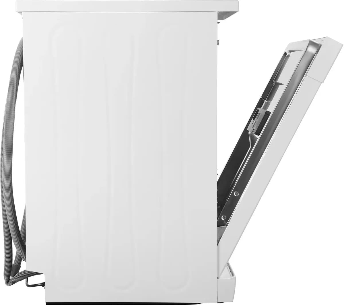 Большая часть полноразмерных и узких посудомоек встраиваемого и отдельностоящего вида имеет высоту около 82-85 см: такие модели легко размещаются под столешницей. Встраиваемые модели несколько ниже, так как у них отсутствует верхняя крышка.