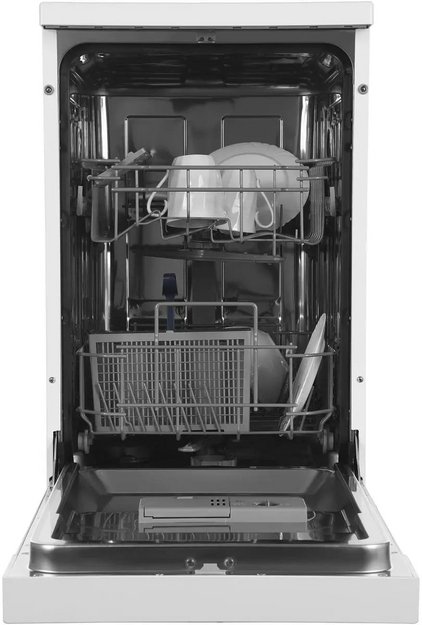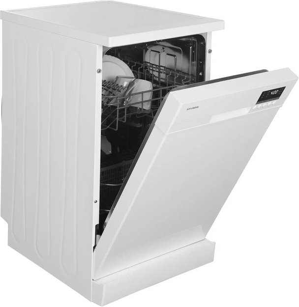 Отдельностоящая модель Хендай отлично впишется в кухонный интерьер, главное — правильно выбрать место, чтобы подвести коммуникации. Имеет уменьшенную ширину — благодаря этому поместится даже на очень маленькой кухне. В камеру можно загрузить ограниченное число комплектов: 9 шт. Комплектом считается набор посуды на одного человека, который нужен для полноценного приема пищи: глубокая и плоская тарелки, тарелка для салата, блюдце под чашку, сама чашка, ложка и вилка.