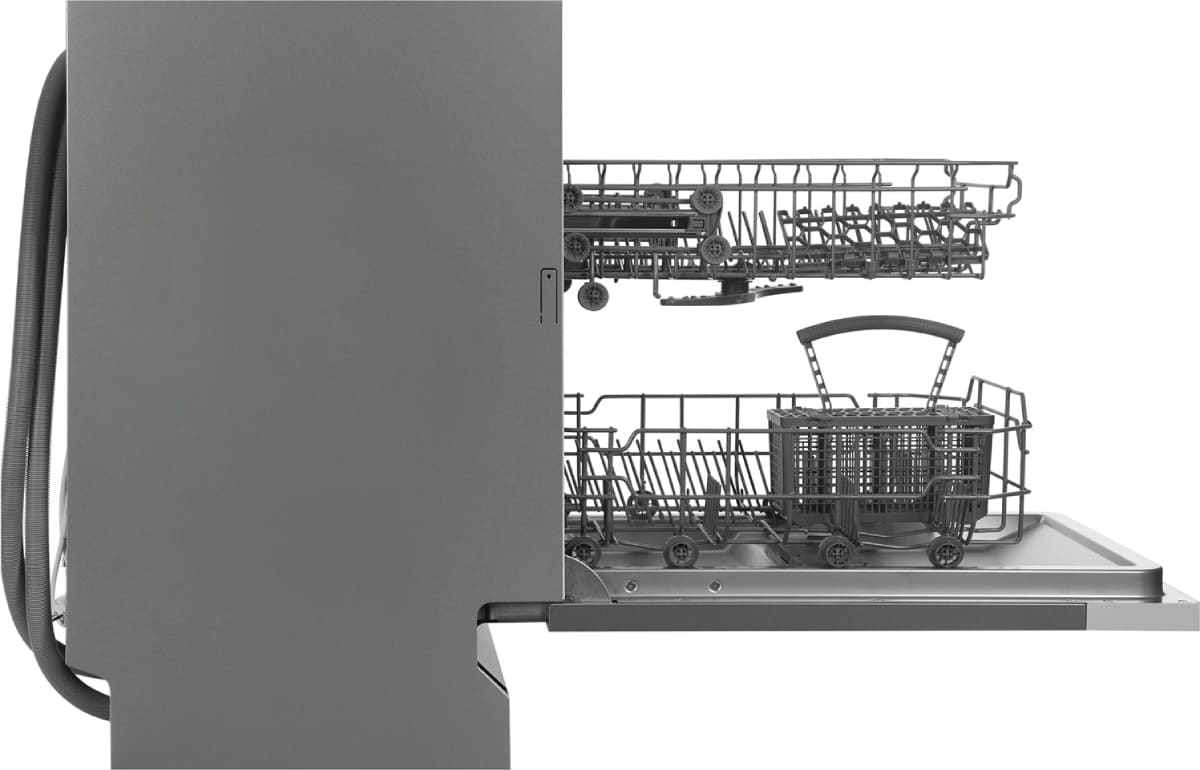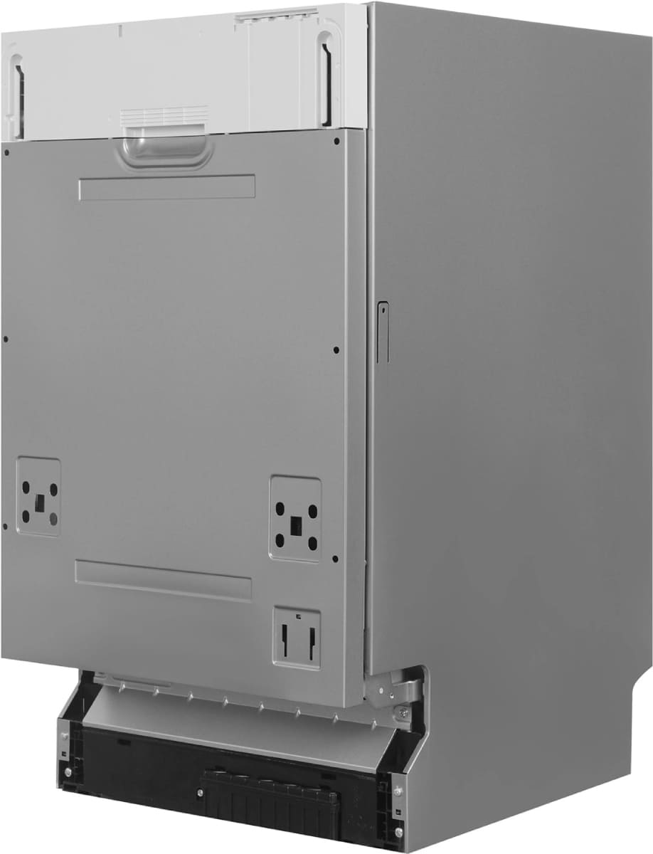 Встраиваемая модель Хендай отлично впишется в любой интерьер, главное — правильно выбрать место, чтобы подвести коммуникации. Устанавливается в нишу целиком, полностью закрывается декоративной панелью. Обратите внимание: в комплекте не идет фасад, его необходимо установить самостоятельно. Имеет уменьшенную ширину — благодаря этому поместится даже на очень маленькой кухне. В камеру можно загрузить ограниченное число комплектов: 9 шт. Комплектом считается набор посуды на одного человека, который нужен для полноценного приема пищи: глубокая и плоская тарелки, тарелка для салата, блюдце под чашку, сама чашка, ложка и вилка.