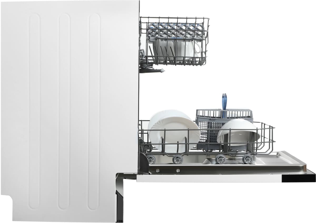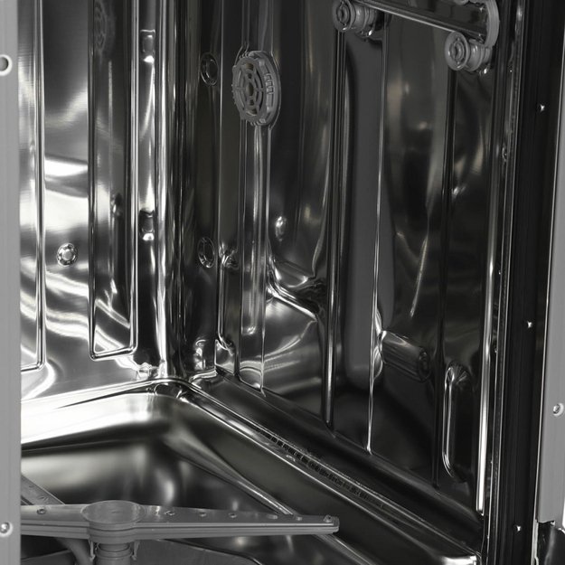 Встраиваемая модель Хендай отлично впишется в любой интерьер, главное — правильно выбрать место, чтобы подвести коммуникации. Устанавливается в нишу целиком, полностью закрывается декоративной панелью. Обратите внимание: в комплекте не идет фасад, его необходимо установить самостоятельно. Имеет уменьшенную ширину — благодаря этому поместится даже на очень маленькой кухне. В камеру можно загрузить ограниченное число комплектов: 10 шт. Комплектом считается набор посуды на одного человека, который нужен для полноценного приема пищи: глубокая и плоская тарелки, тарелка для салата, блюдце под чашку, сама чашка, ложка и вилка.