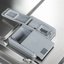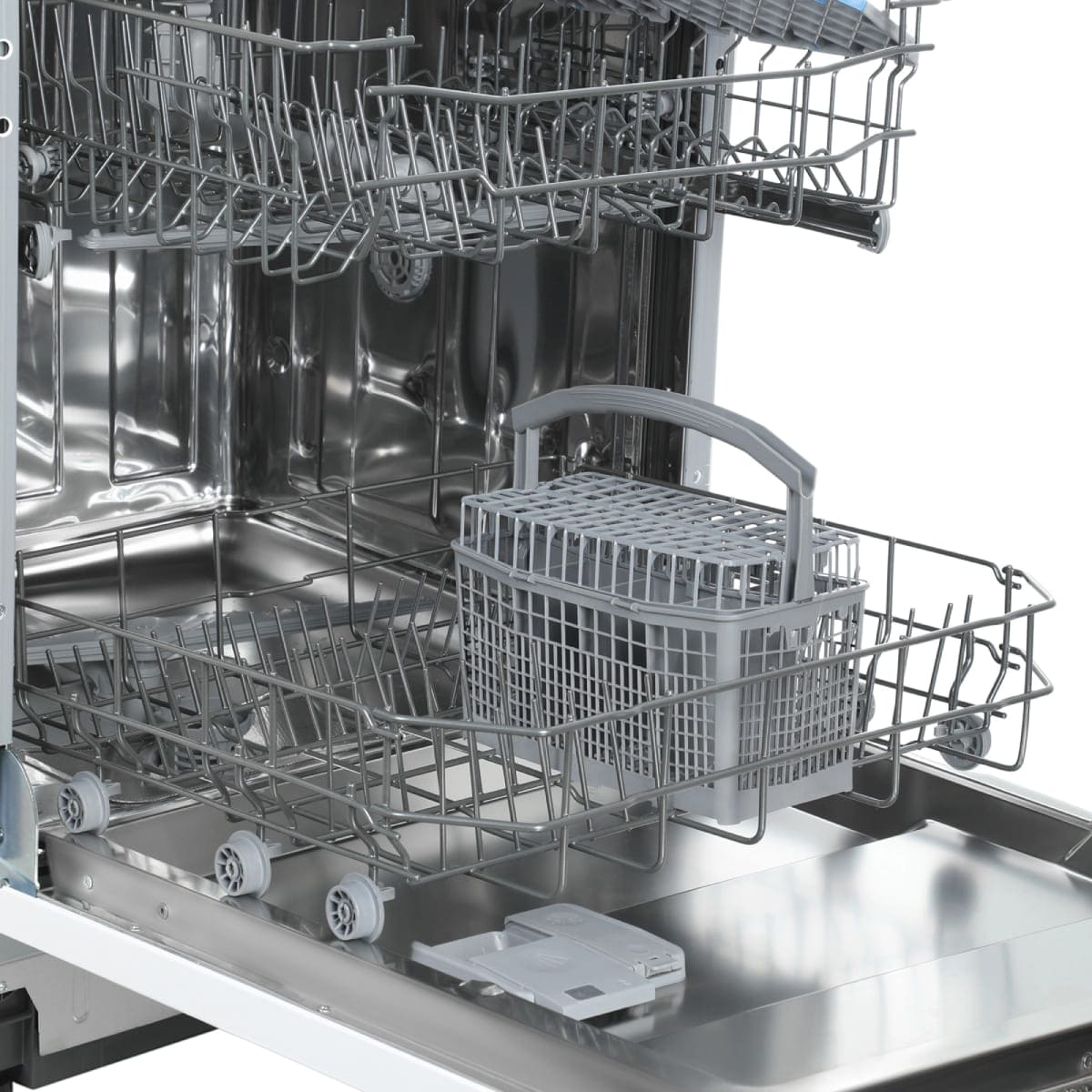 Корзина для столовых приборов — один из обязательных аксессуаров, которыми оснащается любая посудомоечная машина. Она представляет собой сетчатый пластиковый органайзер, в котором устанавливаются в вертикальном положении ложки, ножи и вилки. Корзина, как правило, разделяется на отдельные отсеки, в каждый из которых можно поместить один или несколько предметов. Зачастую сверху она закрывается специальной крышкой, которая также служит для разделения приборов, способствуя более тщательному их мытью.