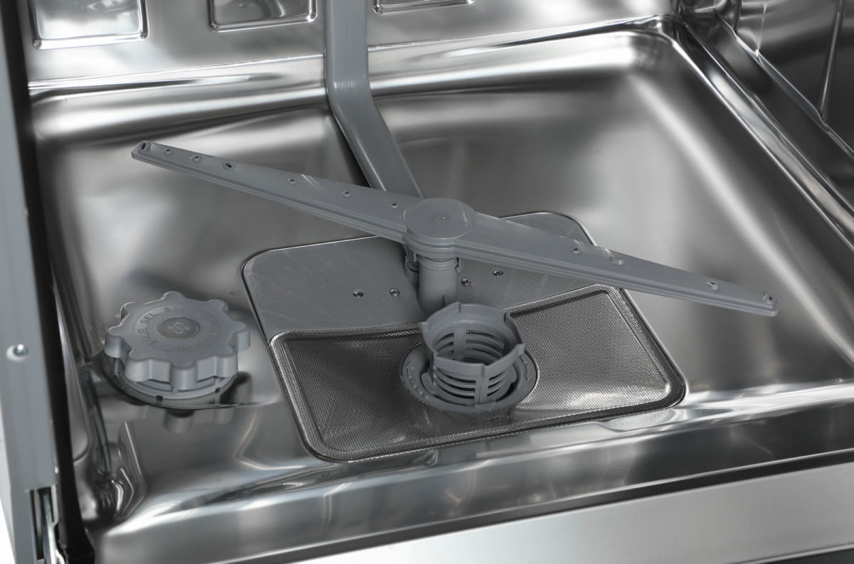 Как известно, принцип работы посудомоечной машины состоит в том, что на посуду в корзинах воздействуют сильные струи воды, которые подаются сквозь специальные форсунки во вращающихся разбрызгивателях-коромыслах. Класс мытья определяется, исходя из количества разбрызгивателей и форсунок, а также их диаметра — чем больше отверстий и чем меньше их диаметр, тем выше класс. Имеет значение также и расположение отверстий, так как струи воды не должны пересекаться — это мешает точности попадания в нужные места, а значит, и эффективности мытья. Кроме того, в камере не должно оставаться «слепых» зон, куда вода попадать не будет.