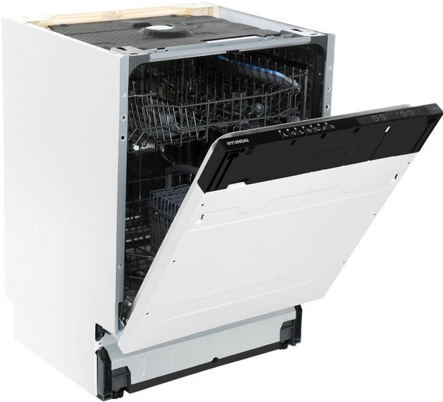 Встраиваемая модель Хендай отлично впишется в любой интерьер, главное — правильно выбрать место, чтобы подвести коммуникации. Устанавливается в нишу целиком, полностью закрывается декоративной панелью. Обратите внимание: в комплекте не идет фасад, его необходимо установить самостоятельно. Имеет стандартные размеры, поэтому может не поместиться на очень маленькой кухне. В камеру можно загрузить ограниченное число комплектов: 12 шт. Комплектом считается набор посуды на одного человека, который нужен для полноценного приема пищи: глубокая и плоская тарелки, тарелка для салата, блюдце под чашку, сама чашка, ложка и вилка.