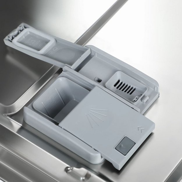 Для высококачественного мытья требуются три компонента. Порошок служит для удаления загрязнений, оставшихся на посуде. Соль нейтрализует примеси, содержащиеся в водопроводной воде, и позволяет избавиться от накипи и известковых отложений на посуде и внутренней поверхности камеры. И, наконец, ополаскиватель позволяет уменьшить поверхностное натяжение воды при помощи специальных составляющих — тензидов, которые облегчают скатывание капель воды. Он способствует удалению остатков порошка и соли, придает посуде ослепительный блеск, и в конечном счете обеспечивает лучшее и быстрое высыхание, а также отсутствие разводов и потеков на ее поверхности.