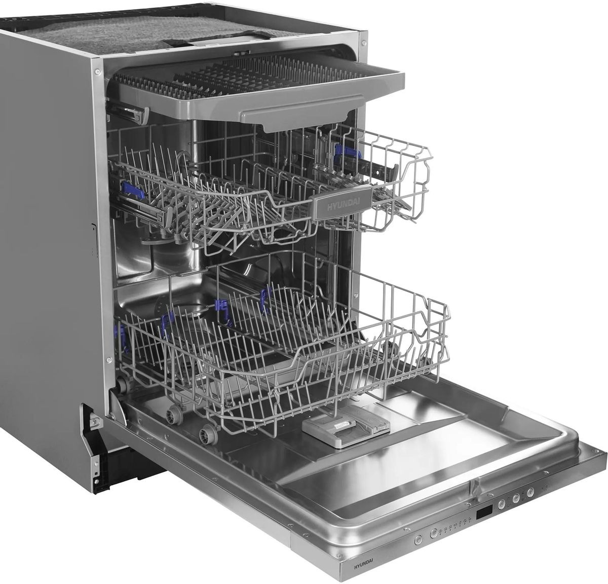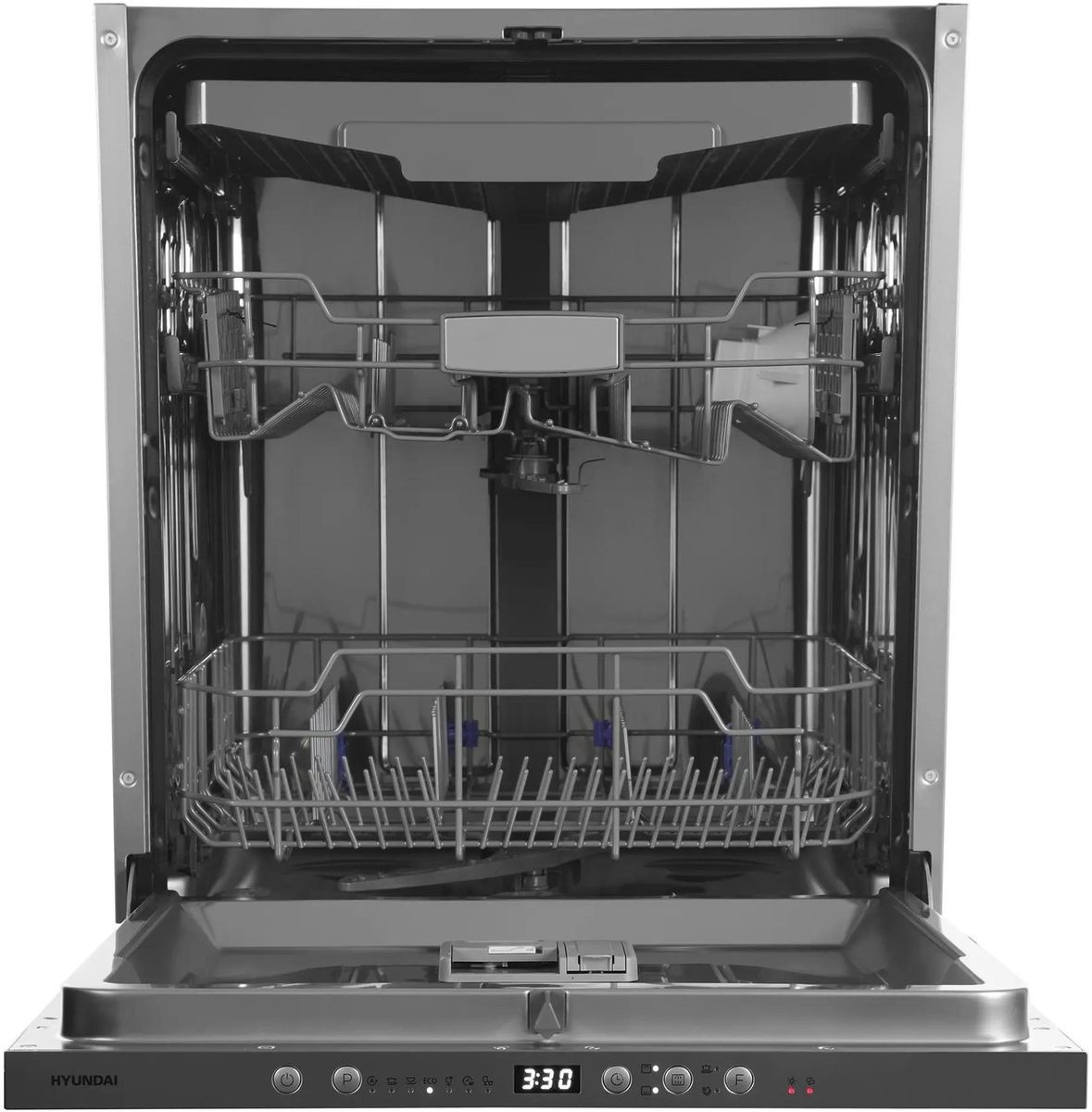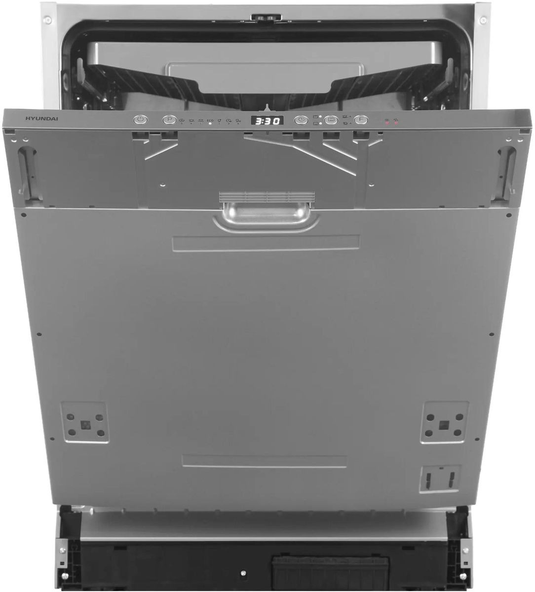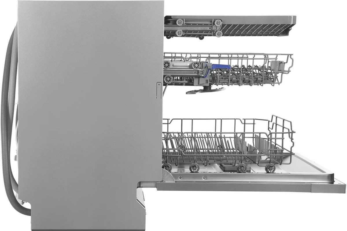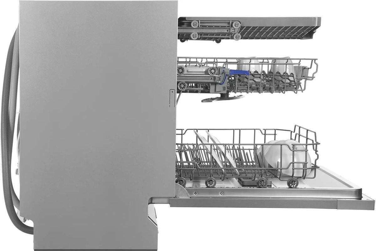 Встраиваемая модель Хендай отлично впишется в любой интерьер, главное — правильно выбрать место, чтобы подвести коммуникации. Устанавливается в нишу целиком, полностью закрывается декоративной панелью. Обратите внимание: в комплекте не идет фасад, его необходимо установить самостоятельно. Имеет стандартные размеры, поэтому может не поместиться на очень маленькой кухне. В камеру можно загрузить ограниченное число комплектов: 14 шт. Комплектом считается набор посуды на одного человека, который нужен для полноценного приема пищи: глубокая и плоская тарелки, тарелка для салата, блюдце под чашку, сама чашка, ложка и вилка.