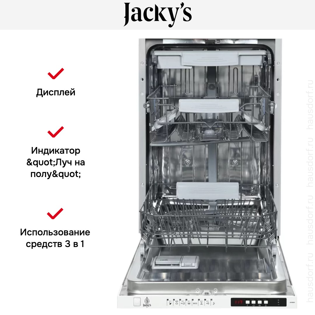 Полноразмерные модели выбирают в больших семьях, а также те, кто много готовит или часто принимает гостей. Их вместимость может составить до 15 комплектов посуды, а габаритные размеры соответствуют размерам стандартной кухонной мебели шириной и глубиной 60 см и высотой 82-85 см. Они выпускаются как во встраиваемом, так и в отдельностоящем варианте: во втором случае для установки понадобится достаточно много места. Как правило, полноразмерные приборы отличаются большим набором стандартных и специальных программ мойки, а также дополнительных опций: в частности, они оснащаются третьей корзиной для мытья столовых приборов.