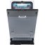 Полностью встраиваемая узкая машина имеет стандартные для таких моделей размеры, а именно — ширину 45 см, глубину 55 см и высоту 81,5 см. Она интегрируется в кухонный гарнитур и подсоединяется к системам водоснабжения и канализации, а также к заземленной розетке с автоматическим выключателем и устройством защитного отключения. На дверцу устанавливается мебельный фасад из тех же материалов, что и дверцы остальных шкафов и тумб. Машина выравнивается на месте установки благодаря регулируемым ножкам, а навеска фасада производится с помощью шаблона, который приложен к устройству.