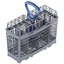 Корзина для столовых приборов — один из обязательных аксессуаров, которыми оснащается любая посудомоечная машина. Она представляет собой сетчатый пластиковый органайзер, в котором устанавливаются в вертикальном положении ложки, ножи и вилки. Корзина, как правило, разделяется на отдельные отсеки, в каждый из которых можно поместить один или несколько предметов. Зачастую сверху она закрывается специальной крышкой, которая также служит для разделения приборов, способствуя более тщательному их мытью.