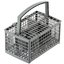 Корзина для столовых приборов — один из обязательных аксессуаров, которыми оснащается любая посудомоечная машина. Она представляет собой сетчатый пластиковый органайзер, в котором устанавливаются в вертикальном положении ложки, ножи и вилки. Корзина, как правило, разделяется на отдельные отсеки, в каждый из которых можно поместить один или несколько предметов. Зачастую сверху она закрывается специальной крышкой, которая также служит для разделения приборов, способствуя более тщательному их мытью.
