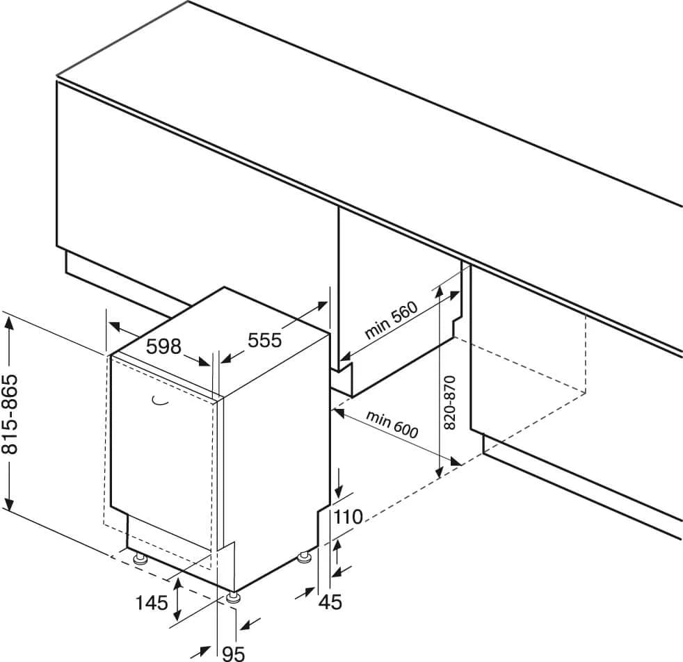 Большая часть полноразмерных и узких посудомоек встраиваемого и отдельностоящего вида имеет высоту около 82-85 см: такие модели легко размещаются под столешницей. Встраиваемые модели несколько ниже, так как у них отсутствует верхняя крышка.
