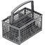 Корзина для столовых приборов — один из обязательных аксессуаров, которыми оснащается любая посудомоечная машина. Она представляет собой сетчатый пластиковый органайзер, в котором устанавливаются в вертикальном положении ложки, ножи и вилки. Корзина, как правило, разделяется на отдельные отсеки, в каждый из которых можно поместить один или несколько предметов. Зачастую сверху она закрывается специальной крышкой, которая также служит для разделения приборов, способствуя более тщательному их мытью.