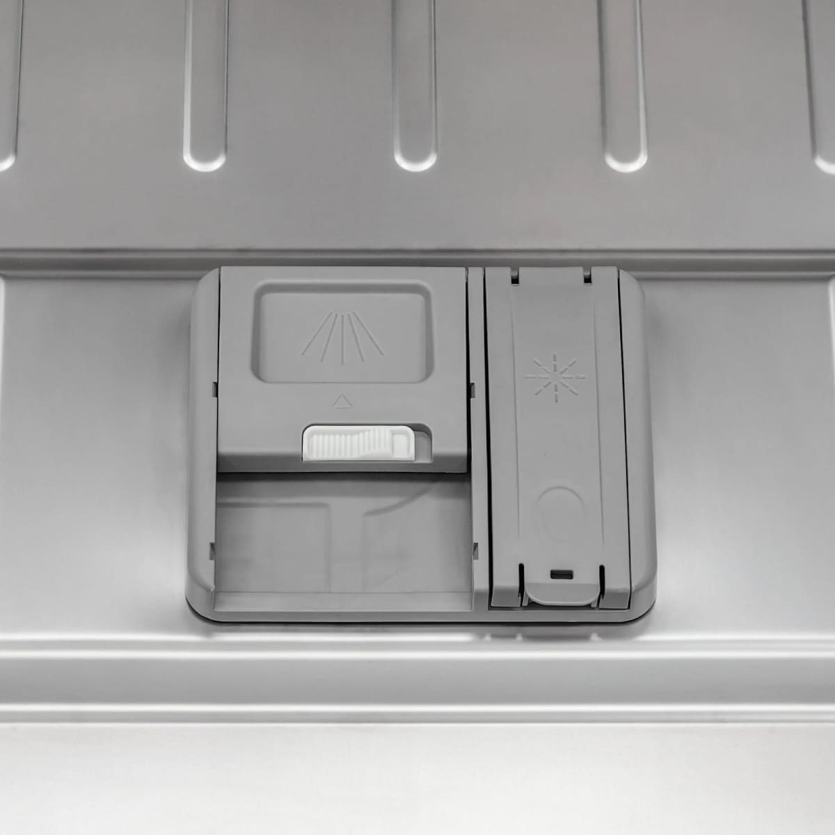 Режим сушки облегчает последующий уход за посудой, предотвращает подтеки на стенках тарелок и бокалов и удаляет значительный процент влаги. Производители внедрили цикл такого типа: конденсационная. Камера выполнена из нержавеющей стали, поэтому служит без проблем, какую бы высокую температуру вы ни включали. Внутренняя подсветка делает работу проще. Внутри расположены разнообразные датчики, сигналы которых выводятся на панель управления, позволяют вам контролировать процесс. Машинка определяет остаток соли и предупреждает о том, что нужно добавить. Отдельный датчик проверяет наличие ополаскивателя.