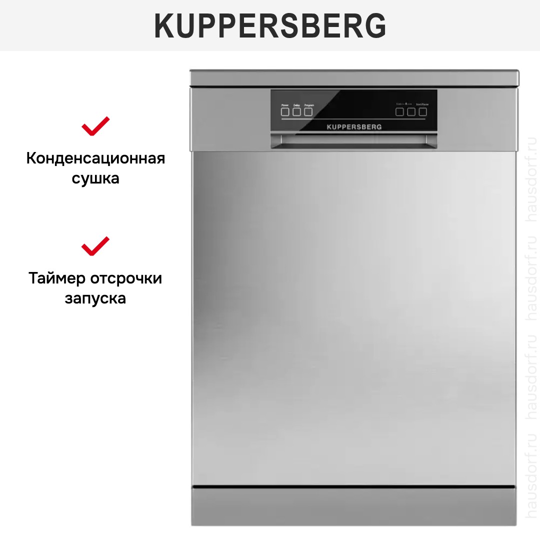 Посудомоечная машина Kuppersberg GGF 6025 — полноформатное, надёжное и экономичное решение для безупречной очистки кухонной утвари в домашних условиях. Свободностоящая модель высотой 60 см вмещает до 14 комплектов посуды, что делает её идеальной для семей, регулярно устраивающих застолья или предпочитающих готовить в больших объёмах. При этом устройство демонстрирует высокую рациональность: класс энергоэффективности A+ и расход воды всего 9,5 литров за цикл подчёркивают его экологичность и бережное отношение к ресурсам.