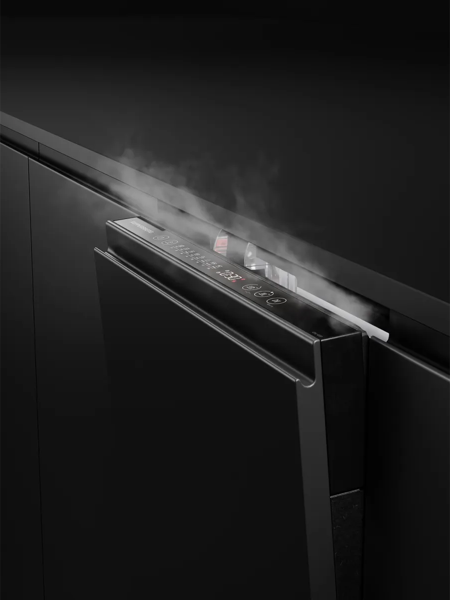 Полностью встраиваемая — посудомоечная машина закрыта мебельным фасадом, панель управления не на виду. Это повышает безопасность работы и облегчает подбор техники под дизайн кухни.