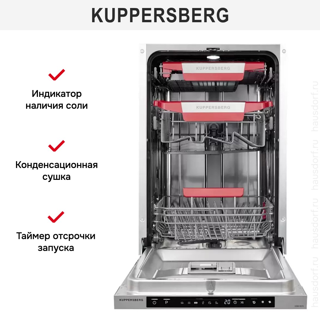 Встраиваемая посудомоечная машина Kuppersberg GSM 4574 — компактное и интеллектуальное устройство, созданное для безупречной очистки посуды в условиях ограниченного пространства. Высота корпуса всего 45 см позволяет легко встроить технику даже в небольшие кухонные гарнитуры, студии или дачные интерьеры, не жертвуя при этом функциональностью. Несмотря на уменьшенные габариты, модель вмещает до 10 комплектов кухонной утвари, что делает её идеальной для пар, молодых семей или ежедневного использования в компактных помещениях.