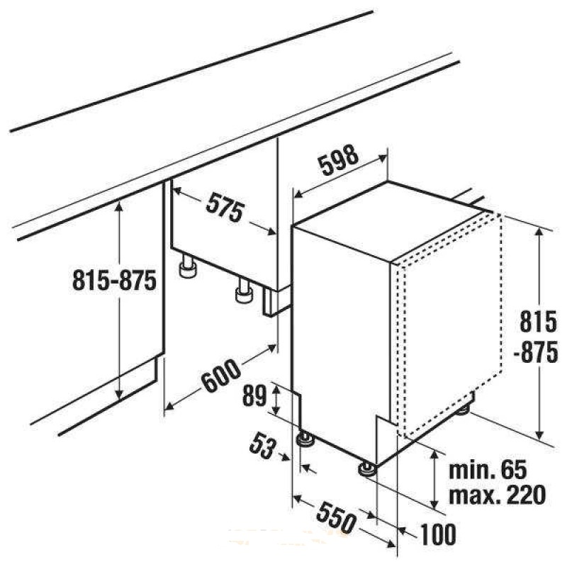 Большая часть полноразмерных и узких посудомоек встраиваемого и отдельностоящего вида имеет высоту около 82-85 см: такие модели легко размещаются под столешницей. Встраиваемые модели несколько ниже, так как у них отсутствует верхняя крышка.