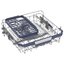 Корзина для столовых приборов достаточно высока, ввиду чего она устанавливается в нижнем коробе, где для нее предусматривается специальное место между разделителями для тарелок. Приборы в корзине могут размещаться как вниз, так и вверх рукоятками — это зависит от количества приборов и требований пользователя. Однако острые предметы — ножи или вилки — необходимо размещать острием вниз для предотвращения травм. Ножи рекомендуется размещать в корзинах с осторожностью, поскольку лезвия из керамики, например, могут затупиться. Чтобы избежать этого, следует использовать фирменные моющие средства и обязательно располагать ножи по отдельности, чтобы они не соприкасались с другими предметами.