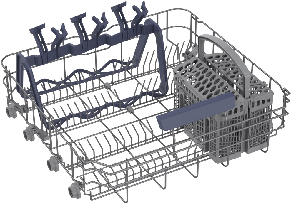 Как правило, полки для столовых приборов находятся в верхней корзине — таким образом, чтобы под ними можно было расположить, например, небольшие чашки. Часто полки оснащаются специальными разделителями, которые позволяют зафиксировать любой предмет, чтобы он не мог случайно сдвинуться с перекрыть доступ к соседним. В ряде моделей для столовых приборов предусматриваются большие полки, которые размещаются на третьем уровне. Такая конструкция считается оптимальной, так как освобождается место в корзинах для более крупных предметов. Такие полки достигают в высоту 5 см, так что на них можно размещать не только обычные ножи, ложки или вилки, но и более объемные половники, шумовки, лопатки, терки и другую подобную утварь.
