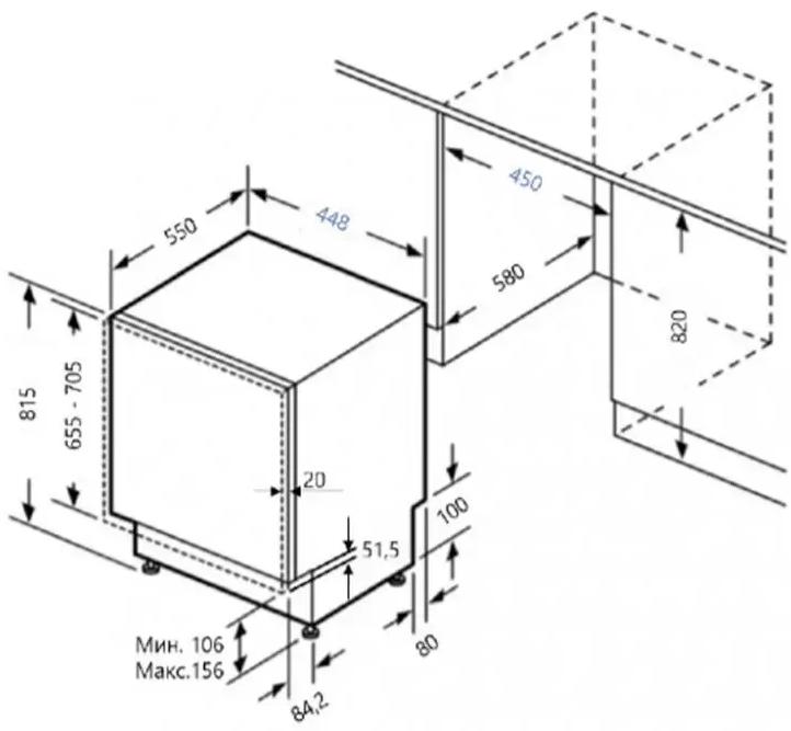 - Размеры ниши для встраивания (ВхШхГ): 82 х 45 х 58 см