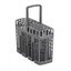 Корзина для столовых приборов — один из обязательных аксессуаров, которыми оснащается любая посудомоечная машина. Она представляет собой сетчатый пластиковый органайзер, в котором устанавливаются в вертикальном положении ложки, ножи и вилки. Корзина, как правило, разделяется на отдельные отсеки, в каждый из которых можно поместить один или несколько предметов. Зачастую сверху она закрывается специальной крышкой, которая также служит для разделения приборов, способствуя более тщательному их мытью.