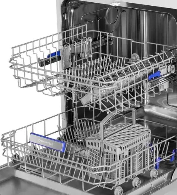 Полноразмерные модели выбирают в больших семьях, а также те, кто много готовит или часто принимает гостей. Их вместимость может составить до 15 комплектов посуды, а габаритные размеры соответствуют размерам стандартной кухонной мебели шириной и глубиной 60 см и высотой 82-85 см. Они выпускаются как во встраиваемом, так и в отдельностоящем варианте: во втором случае для установки понадобится достаточно много места. Как правило, полноразмерные приборы отличаются большим набором стандартных и специальных программ мойки, а также дополнительных опций: в частности, они оснащаются третьей корзиной для мытья столовых приборов.