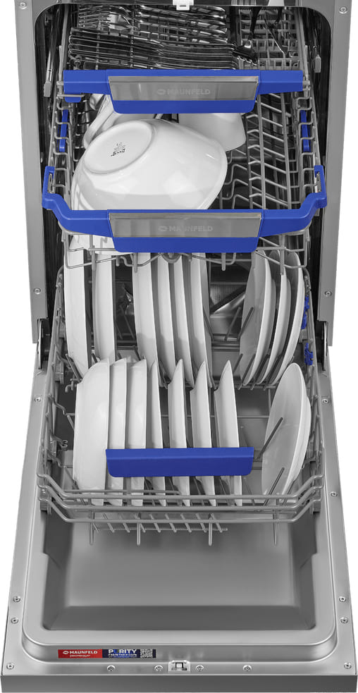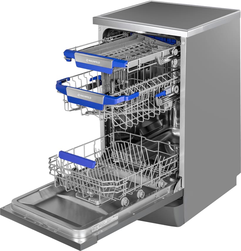 Отдельностоящая модель Маунфилд отлично впишется в кухонный интерьер, главное — правильно выбрать место, чтобы подвести коммуникации. Имеет уменьшенную ширину — благодаря этому поместится даже на очень маленькой кухне. В камеру можно загрузить ограниченное число комплектов: 10 шт. Комплектом считается набор посуды на одного человека, который нужен для полноценного приема пищи: глубокая и плоская тарелки, тарелка для салата, блюдце под чашку, сама чашка, ложка и вилка.