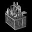 Корзина для столовых приборов — один из обязательных аксессуаров, которыми оснащается любая посудомоечная машина. Она представляет собой сетчатый пластиковый органайзер, в котором устанавливаются в вертикальном положении ложки, ножи и вилки. Корзина, как правило, разделяется на отдельные отсеки, в каждый из которых можно поместить один или несколько предметов. Зачастую сверху она закрывается специальной крышкой, которая также служит для разделения приборов, способствуя более тщательному их мытью.