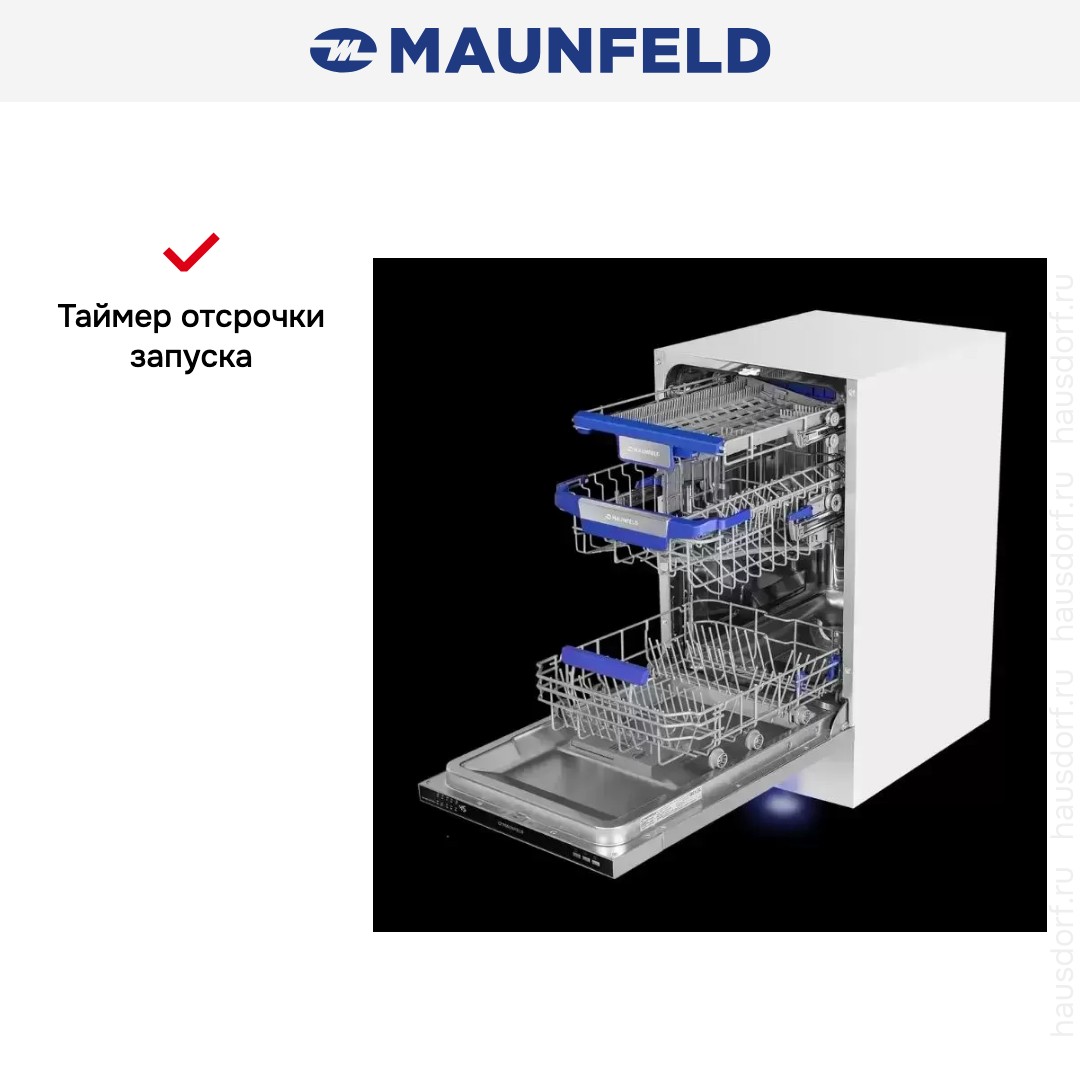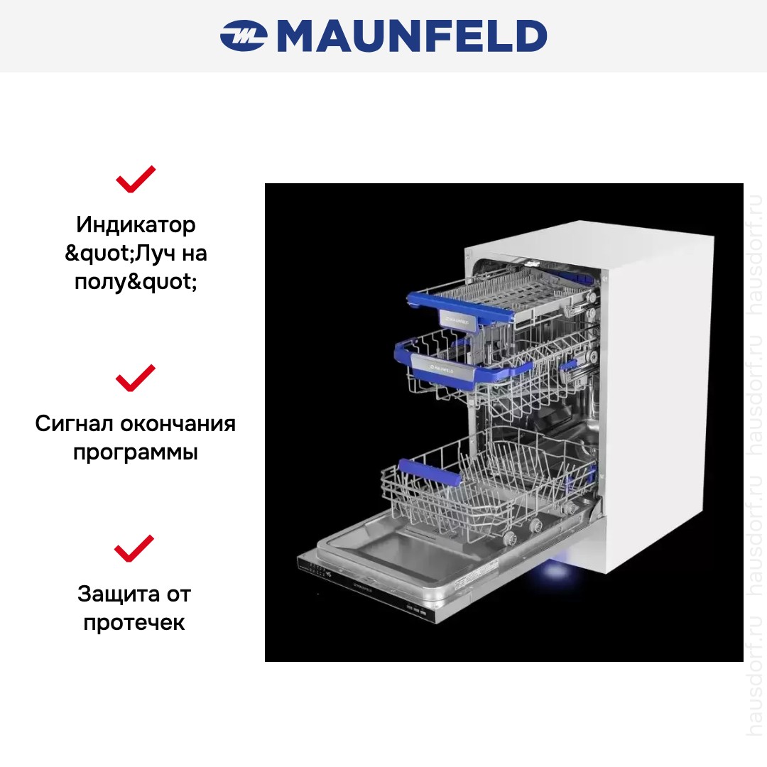 Встраиваемая посудомоечная машина Maunfeld MLP 083I Light Beam создана для аккуратной интеграции под фасад вашей кухни и обеспечивает компактность без компромиссов в функционале. Корпус полностью встраиваемый, высота 81.5 см и глубина 55 см позволяют скрыть технику за мебельной панелью. Узкая ширина 44.8 см идеально подходит для ограниченного пространства, при этом панель управления скрыта за фасадом, а видимая часть только черная фронтальная панель для удобства доступа.