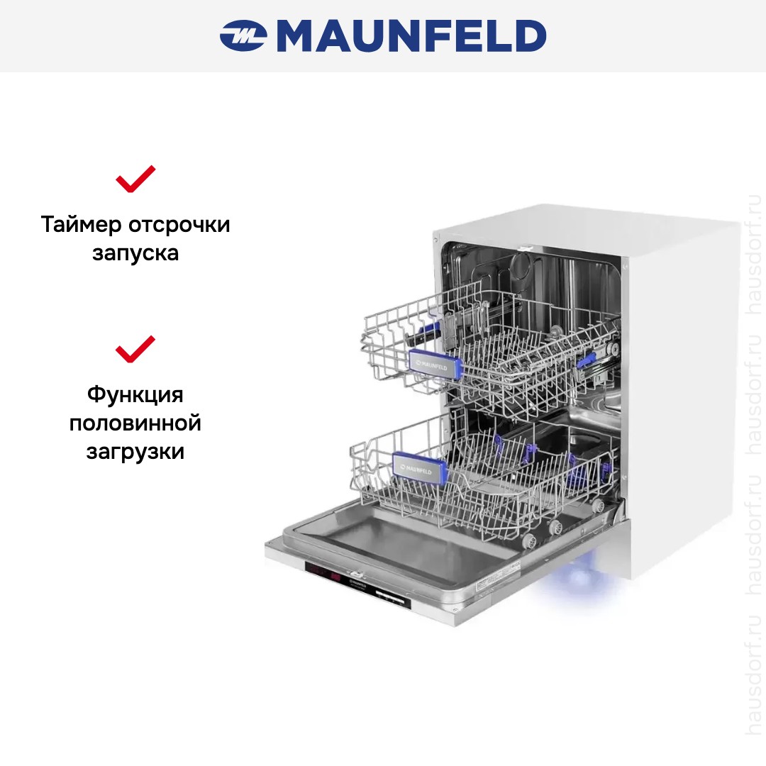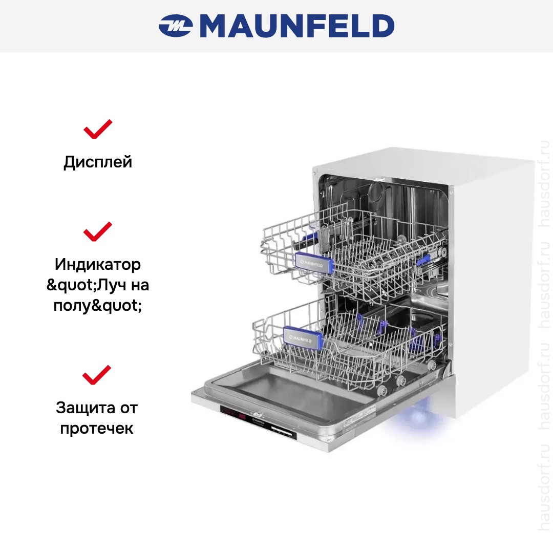 Встраиваемая посудомоечная машина Maunfeld MLP 122D Light Beam сочетает аккуратный внешний вид и практичные инженерные решения. Она рассчитана на полное встраивание под мебельную фасаду и оставляет лишь панель управления на виду.