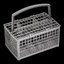 Корзина для столовых приборов — один из обязательных аксессуаров, которыми оснащается любая посудомоечная машина. Она представляет собой сетчатый пластиковый органайзер, в котором устанавливаются в вертикальном положении ложки, ножи и вилки. Корзина, как правило, разделяется на отдельные отсеки, в каждый из которых можно поместить один или несколько предметов. Зачастую сверху она закрывается специальной крышкой, которая также служит для разделения приборов, способствуя более тщательному их мытью.