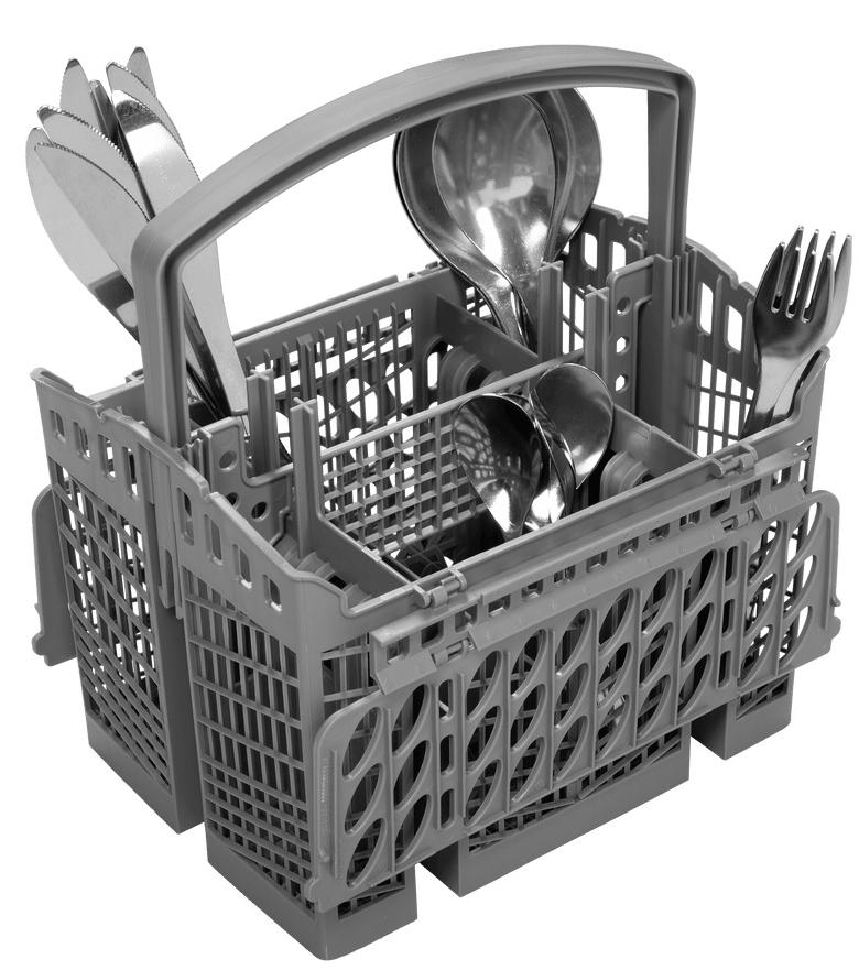 Корзина для столовых приборов — один из обязательных аксессуаров, которыми оснащается любая посудомоечная машина. Она представляет собой сетчатый пластиковый органайзер, в котором устанавливаются в вертикальном положении ложки, ножи и вилки. Корзина, как правило, разделяется на отдельные отсеки, в каждый из которых можно поместить один или несколько предметов. Зачастую сверху она закрывается специальной крышкой, которая также служит для разделения приборов, способствуя более тщательному их мытью.