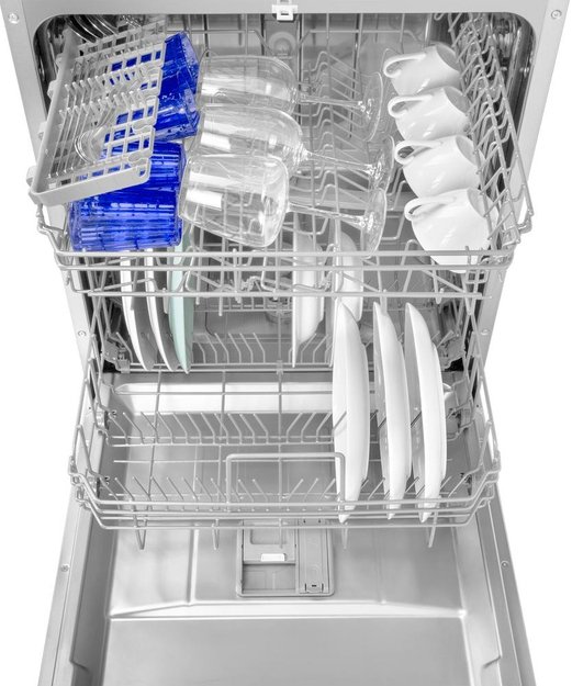 Полноразмерные модели выбирают в больших семьях, а также те, кто много готовит или часто принимает гостей. Их вместимость может составить до 15 комплектов посуды, а габаритные размеры соответствуют размерам стандартной кухонной мебели шириной и глубиной 60 см и высотой 82-85 см. Они выпускаются как во встраиваемом, так и в отдельностоящем варианте: во втором случае для установки понадобится достаточно много места. Как правило, полноразмерные приборы отличаются большим набором стандартных и специальных программ мойки, а также дополнительных опций: в частности, они оснащаются третьей корзиной для мытья столовых приборов.