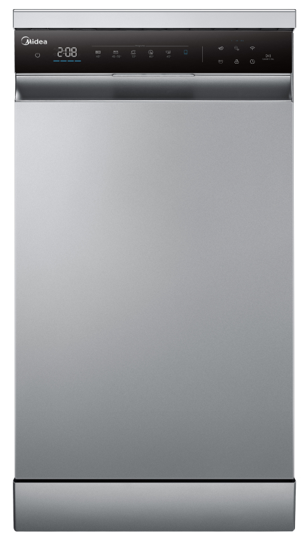 Отдельностоящая модель Мидеа отлично впишется в кухонный интерьер, главное — правильно выбрать место, чтобы подвести коммуникации. Имеет уменьшенную ширину — благодаря этому поместится даже на очень маленькой кухне. В камеру можно загрузить ограниченное число комплектов: 10 шт. Комплектом считается набор посуды на одного человека, который нужен для полноценного приема пищи: глубокая и плоская тарелки, тарелка для салата, блюдце под чашку, сама чашка, ложка и вилка.