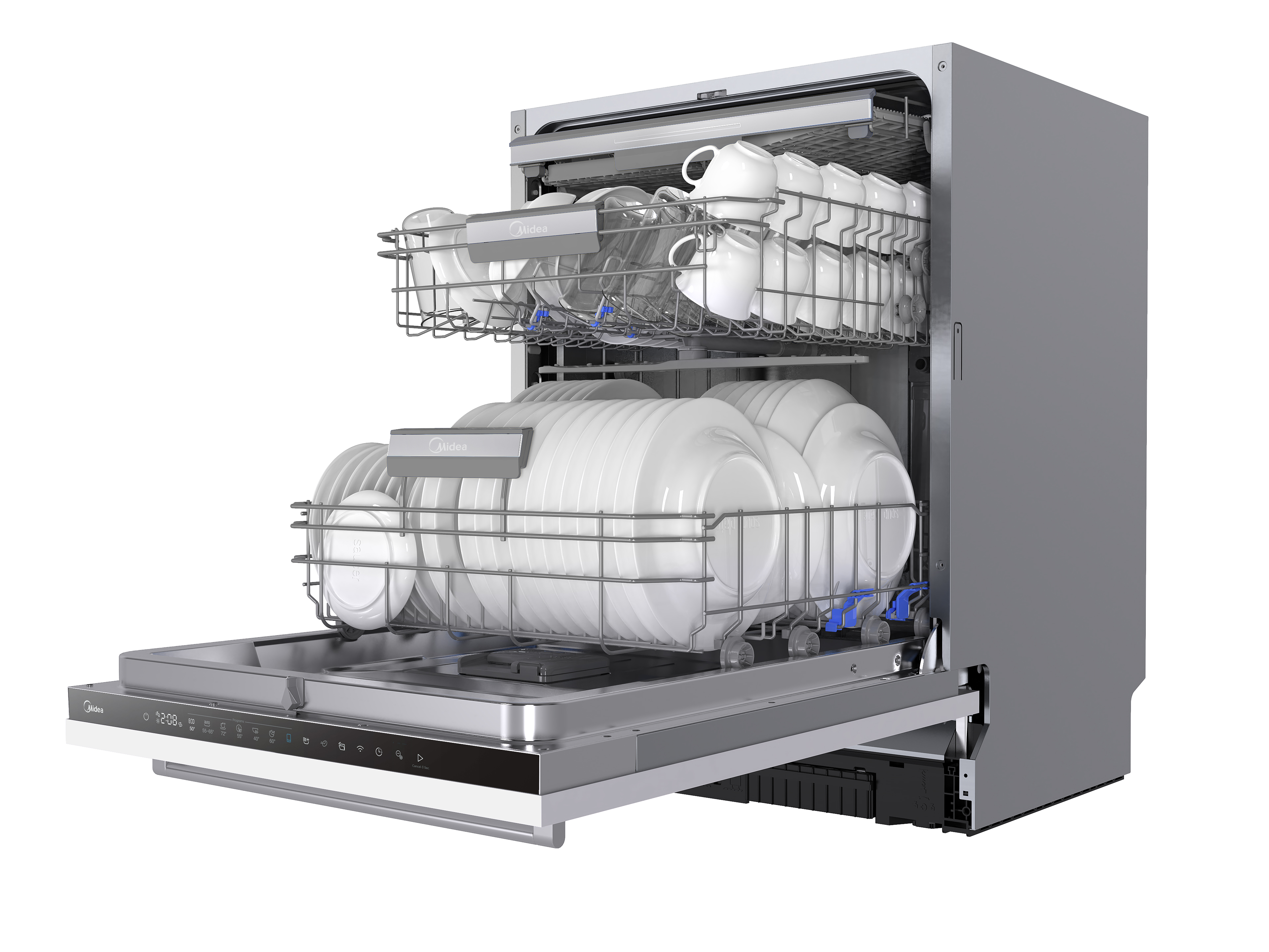 Встраиваемая модель Мидеа отлично впишется в любой интерьер, главное — правильно выбрать место, чтобы подвести коммуникации. Устанавливается в нишу целиком, полностью закрывается декоративной панелью. Обратите внимание: в комплекте не идет фасад, его необходимо установить самостоятельно. Имеет стандартные размеры, поэтому может не поместиться на очень маленькой кухне. В камеру можно загрузить ограниченное число комплектов: 14 шт. Комплектом считается набор посуды на одного человека, который нужен для полноценного приема пищи: глубокая и плоская тарелки, тарелка для салата, блюдце под чашку, сама чашка, ложка и вилка.
