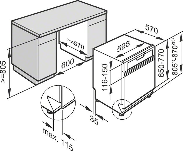 Встраиваемые устройства устанавливаются в тумбу или нишу мебельного гарнитура. В случае, если они полностью закрыты мебельным фасадом, машины считаются полностью встраиваемыми. Такое размещение позволяет сохранить единый стиль интерьера. Панель управления их также скрыта — чтобы начать работу и задать программу, дверцу придется открыть.
