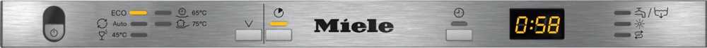 Дисплей на сенсорной или кнопочной панели управления посудомоечной машиной позволяет получить информацию о состоянии устройства, а также отрегулировать параметры работы. Во встраиваемых моделях с закрытой панелью управления он будет недоступен на протяжении цикла мытья, в отдельностоящих устройствах может располагаться на фасаде.