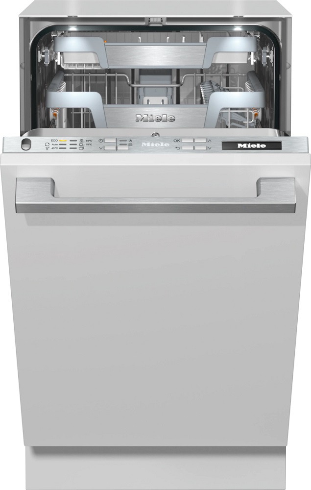 Встраиваемая модель Миле отлично впишется в любой интерьер, главное — правильно выбрать место, чтобы подвести коммуникации. Устанавливается в нишу целиком, полностью закрывается декоративной панелью. Обратите внимание: в комплекте не идет фасад, его необходимо установить самостоятельно. Имеет уменьшенную ширину — благодаря этому поместится даже на очень маленькой кухне. В камеру можно загрузить ограниченное число комплектов: 9 шт. Комплектом считается набор посуды на одного человека, который нужен для полноценного приема пищи: глубокая и плоская тарелки, тарелка для салата, блюдце под чашку, сама чашка, ложка и вилка.