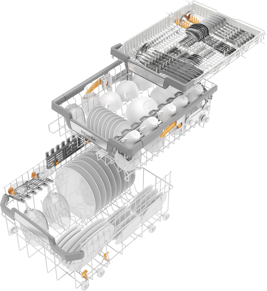 Размещение в посудомоечной машине высоких предметов — например, больших кастрюль, ведер, высоких напольных ваз, — всегда представляло собой проблему. Ее решение предлагает всемирно известная немецкая компания Miele, выпускающая бытовую технику премиального уровня. Она оснащает свои посудомойки специальной программой для мытья высокой посуды без верхней корзины при температуре 65°C. Оговаривается при этом, что посуда не должна быть чувствительна к термическому воздействию — материалом изготовления в этом случае может служить нержавеющая или оцинкованная сталь, а также керамика.