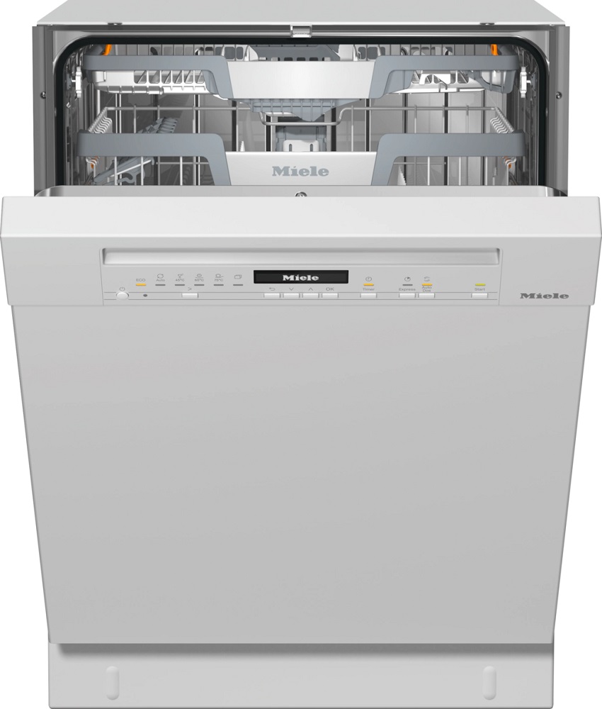 Встраиваемая модель Миле отлично впишется в любой интерьер, главное — правильно выбрать место, чтобы подвести коммуникации. Обратите внимание: в комплекте не идет фасад, его необходимо установить самостоятельно. Устанавливается в нишу неполностью, остается открытой панель управления. Имеет стандартные размеры, поэтому может не поместиться на очень маленькой кухне. В камеру можно загрузить ограниченное число комплектов: 14 шт. Комплектом считается набор посуды на одного человека, который нужен для полноценного приема пищи: глубокая и плоская тарелки, тарелка для салата, блюдце под чашку, сама чашка, ложка и вилка.
