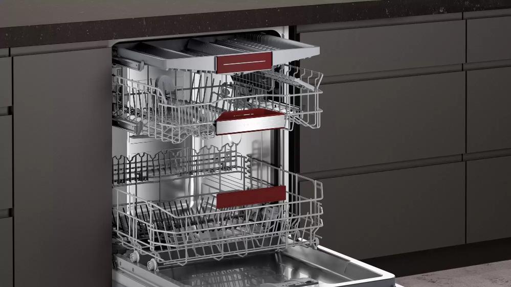 Третий уровень загрузки VarioDrawer — инновация, применяемая в посудомоечных машинах производства известных немецких брендов — Siemens, Bosch, Neff, Gaggenau. Он представляет собой выдвижной лоток, изготовленный из прочного и безопасного пластика и размещенный в верхней части рабочей камеры.