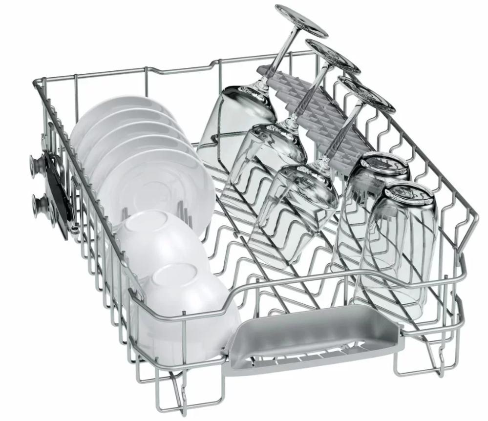 Эта система облегчает работу, не нужно доставать корзину, чтобы изменить уровень ее расположения. Также не нужно откладывать в сторону крупные тарелки и бокалы, они легко помещаются благодаря увеличенному пространству между корзинами.